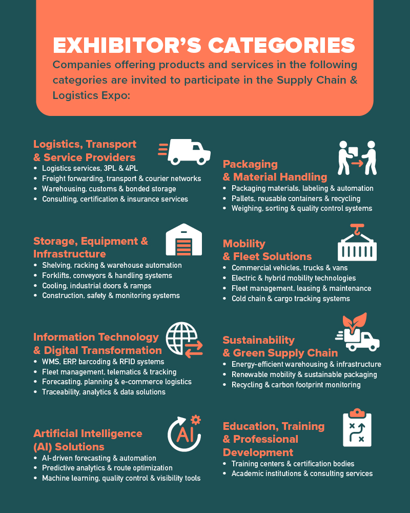 The Supply Chain & Logistics Expo features a comprehensive agenda of presentations, discussions, and case studies that showcase best practices and technological advancements in logistics, warehousing, transportation, and supply chain management. Through its interactive sessions, exhibition areas, and networking opportunities, the event provides participants with the tools and insights they need to optimize operations, adopt innovation, and embrace the future of logistics in Cyprus and beyond.